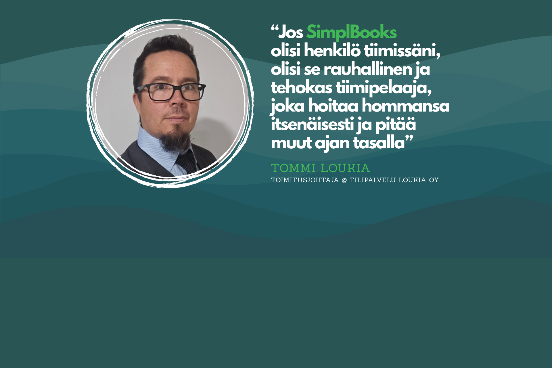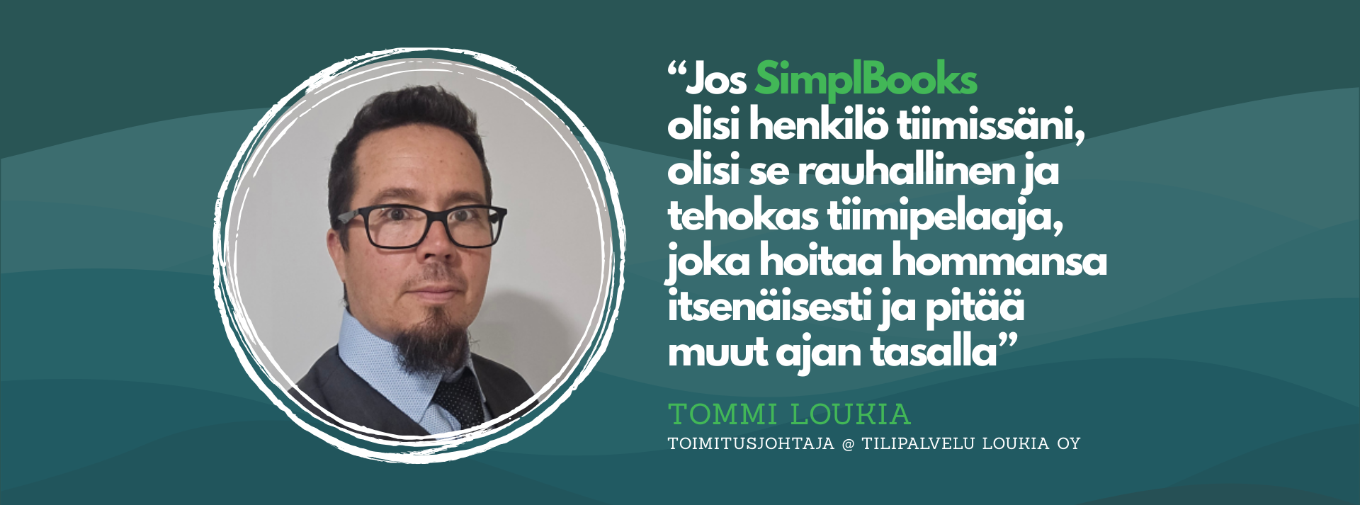 Nykyään Tilipalvelu Loukia Oy hyödyntää SimplBooksia monipuolisesti työssään. Kirjanpidon lisäksi ohjelmalla hoituvat laskutus, tuntikirjaukset ja kulujen raportointi. Myös pankki-integraatiot ovat aktiivisesti käytössä, mikä tekee taloushallinnon hoitamisesta entistä sujuvampaa. Tommi arvostaa erityisesti sitä, että SimplBooksissa voi hallita asetuksia ja esimerkiksi tuloslaskelmaa itse. Hänellä on myös asiakas, joka käyttää SimplBooksia täysin mobiilisti ilman tietokonetta, ja ohjelma toimii siinäkin mutkattomasti.