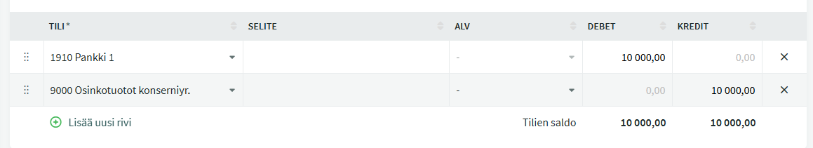 Osingot kirjanpidossa kirjataan ihan samalla periaatteella kuin kaikki muutkin kirjaukset kirjanpidossa