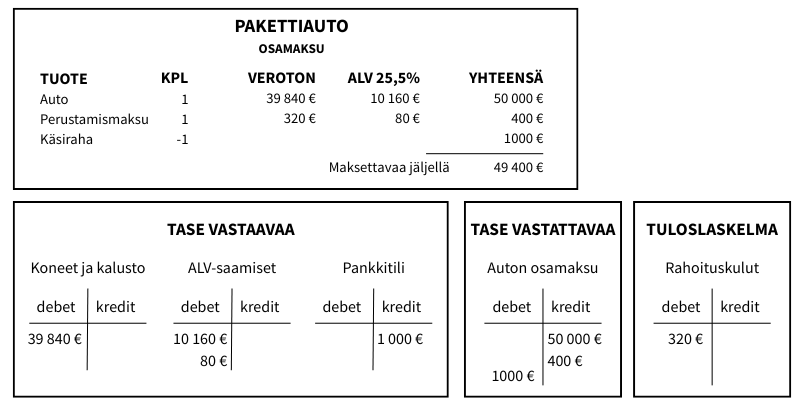 Auton ja osamaksun kirjaaminen kirjanpitoon: