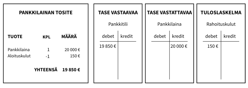 - Lainasta vähennetään 150 euron aloituskustannukset